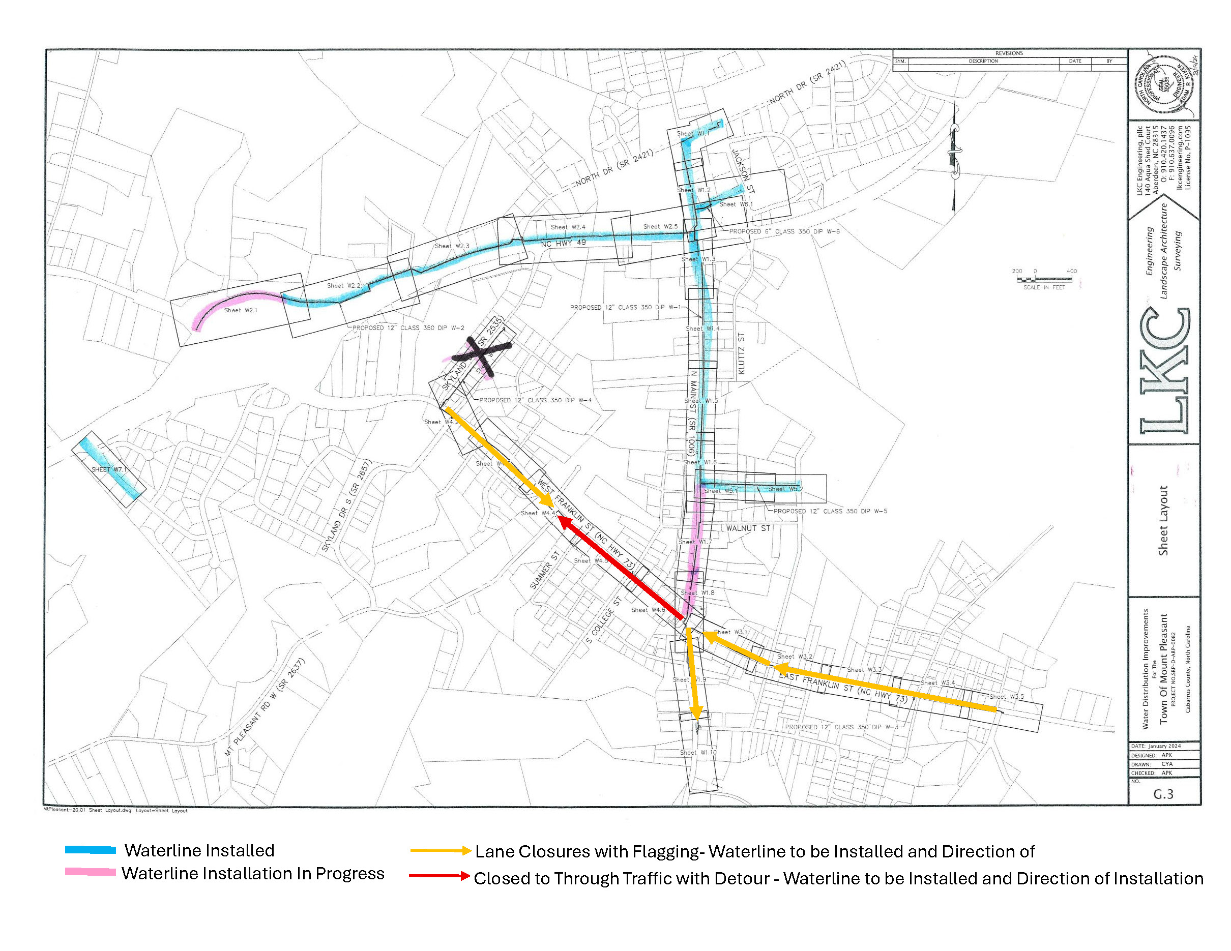 Beginning in early September, a crew will be working on the new 12-inch waterline on E. Franklin Street from Main Street to Blueberry Street. This section of road has a wider cross section to work in and will utilize lane closures and flagging. This will cause some delays in travel on the east side of town, so please plan accordingly. Work on E. Franklin Street is currently scheduled during September and October.